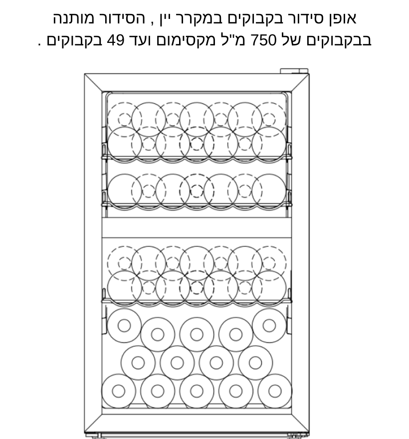 * הסידור מותנה בבקבוקים של עד 750 מ”ל בלבד ועד 49 בקבוקים.